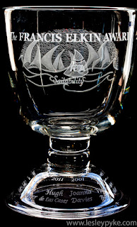 The above was a heavy cut crystal vase for a presentation, I combined sandblasting with hand engraving for this, I love this combination of techniques.