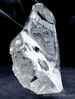 The Guild of Glass Engravers were having an exhibition at the Red House Glass Cone, which ran alongside the Festival of Glass in May 2015. I really did want to put something in but was so so busy with work and golf. Anyway I looked at one of the many cullets I have and thought....hmmm...curious.... I got stuck in a it became "Curiosity" A solid lead crystal cullet, which I have hand engraved (drill) with sandblast and silver leaf, detail. It sold at the start of the exhibition....oh how I wish I had more time for such things! One day!! The way it works at the moment is that I work on commission to pay the overheads. Next year I plan to fit in more creative work.
